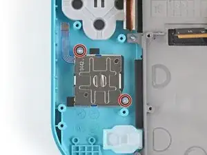 Используйте отвертку JIS 000 или официальную отвертку iFixit PH 000, чтобы выкрутить два винта 3,5 мм, фиксирующих джойстик.