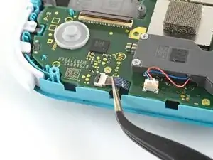 Используйте пинцет, чтобы вытащить кабель правого джойстика из его разъёма на материнской плате.
