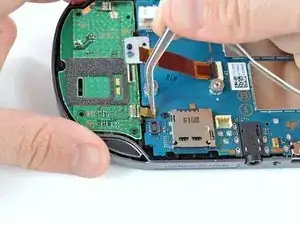 Пинцетом аккуратно извлеките гибкий кабель из разъёма. Отведите гибкий кабель в сторону.