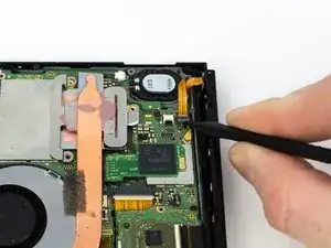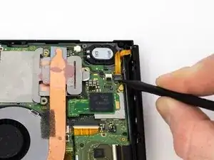 Используйте лопатку, чтобы приподнять небольшой серый замок на кабеле направляющей Joy-Con ZIF.