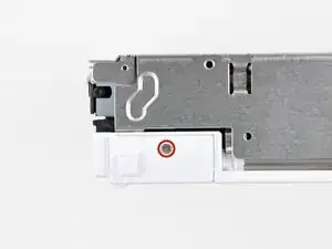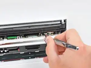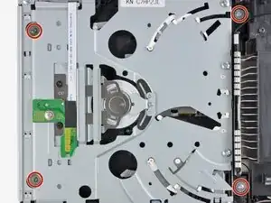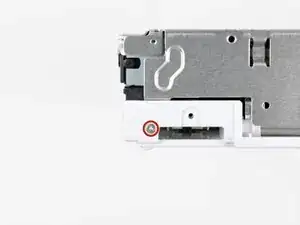 Открутите два 8,2 мм винта Tri-Point, крепящие экран DVD-привода рядом с разъёмами контроллеров.