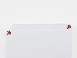Используйте металлическую лопатку, чтобы удалить белые пластиковые заглушки винтов, приклеенные к нижней части корпуса рядом с передней частью Wii.