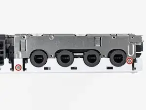 Открутите два оставшихся 4,1 мм винта Phillips вдоль верхнего края чёрной пластиковой рамки разъёмов контроллера.