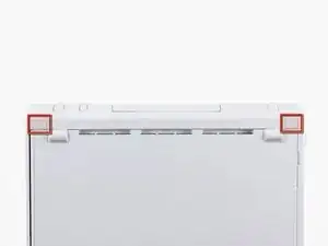 Используйте металлическую лопатку, чтобы удалить две резиновые ножки, приклеенные к нижней стороне Wii рядом с задними портами.