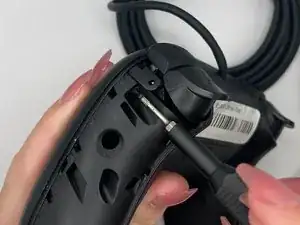 Вставьте инструмент для вскрытия в небольшое отверстие на задней части рукояти и аккуратно подденьте крышку рукояти, пока она не отщёлкнется.