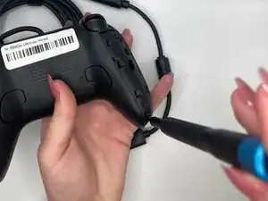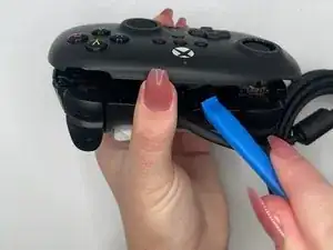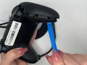 Вставьте инструмент для вскрытия в небольшой зазор между передней и задней панелями и аккуратно подденьте заднюю панель, чтобы освободить нижние зажимы верхней панели контроллера.