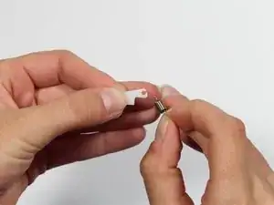 На протяжении этого шага сохраняйте пружину соединённой с пластиковыми защёлками.