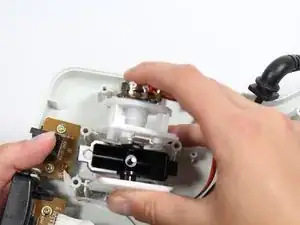 Уберите два винта с крестообразным шлицем Phillips #2 длиной 7 мм с держателя чёрного провода.