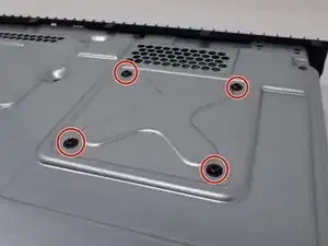 Используйте отвертку Torx T10, чтобы отвинтить четыре винта 11.4 мм, фиксирующие жёсткий диск к верхнему металлическому корпусу.