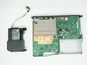 Снимите блок питания, подняв его с материнской платы, при этом оставив подключенным его кабель.