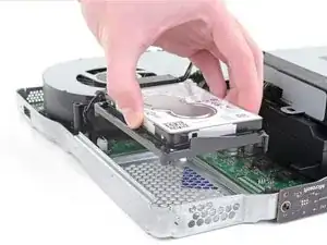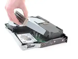 Поднимите узел жесткого диска вверх и выньте его из верхней металлической корпуса.