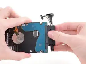 Отключите прилагаемый разъем кабеля, соединяющий жесткий диск с материнской платой, потянув непосредственно вверх.