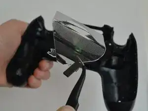 Будьте осторожны: между внутренностями контроллера проходит шлейф. Корпус не разделится на две части при простом разъединении.