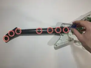Удалите все семь винтов по 12 мм на шее контроллера с помощью отвёртки Philips #2.