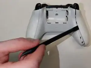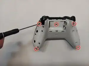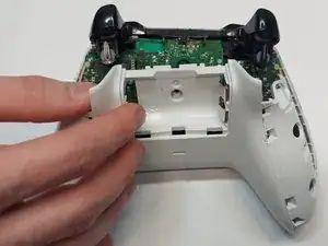Это руководство по ремонту сборки бампера для беспроводного контроллера Xbox One модели 1708. В этом руководстве показано, как снять заднюю крышку контроллера для доступа к внутренним компонентам и замены сборки бампера. Перед началом ремонта необходимо отключить или извлечь любые батареи или подключённые провода.