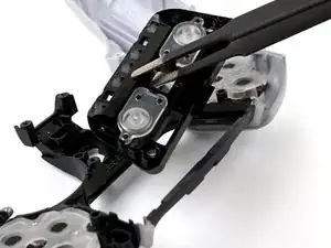 Не пытайтесь полностью удалить сборку спускового крючка на данном этапе. Она всё ещё подключена ленточным кабелем, который будет отключён на следующем шаге.