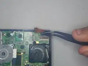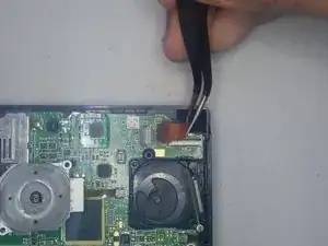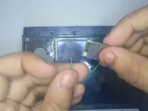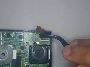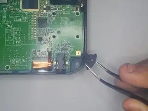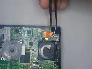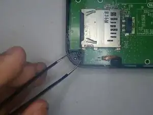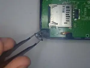 В левом нижнем углу с помощью пинцета снимите маленькую пластиковую деталь.
