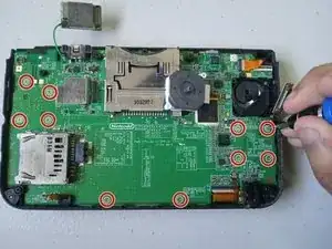 Выверните десять винтов 3 мм с материнской платы крестовой отверткой Phillips #00.