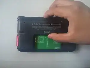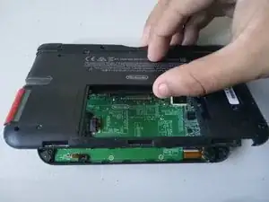 Переверните 3DS XL вверх дном и найдите верхнюю левую петлю.