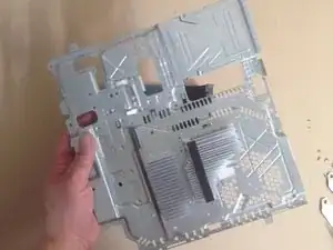 Снимите два зажима радиатора и нижний щит, затем аккуратно отделите материнскую плату от верхнего щита.