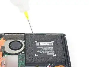 Нанесите теплопроводную пасту на все поверхности, на которых ранее была паста. Это включает участок между тепловой трубкой и алюминиевым экраном, который Switch использует как дополнительный радиатор.