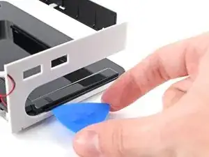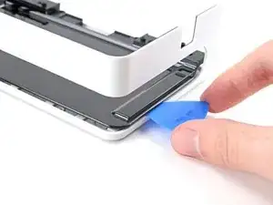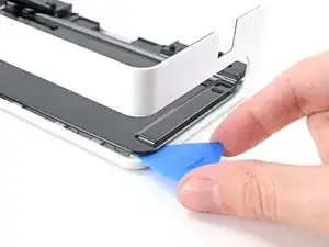 Подденьте медиатором, чтобы полностью отделить нижнюю половину средней крышки от рамки.