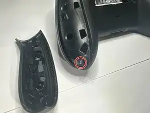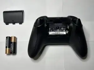 Переверните контроллер и откройте отсек для батареек, расположенный по центру задней стороны контроллера.