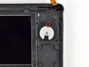 Используйте плоский конец лопатки или ноготь, чтобы поднять фиксирующий флажок на разъеме шлейфа стика.