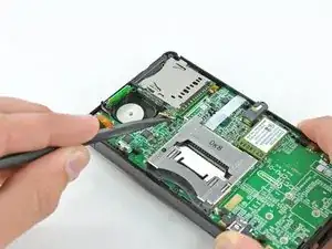 Проведите лопаткой по бокам платы SD, чтобы освободить её от клея, удерживающего её на месте.