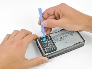 Поднимите батарею с помощью пластикового инструмента для открытия.