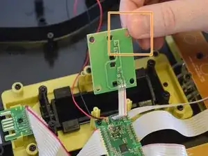 После открытия контроллера аккуратно снимите пластиковую деталь, соединённую с полоской провода, как показано на фото.