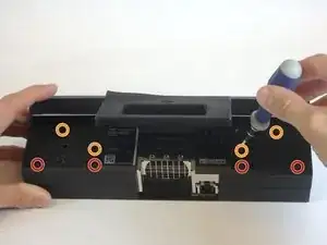 Снимите черные панели по обеим сторонам Kinect и извлеките расположенные под ними винты T10 3.1x7.5 мм.