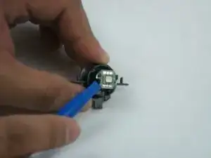 Удалите плату светодиода, поддев плату с помощью синего инструмента для вскрытия.