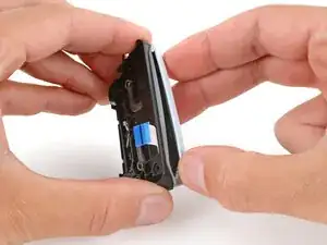 При сборке поместите динамик в его углубление так, чтобы губка была слева, а пружинные контакты — справа.
