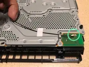 Потяните чёрную ленту сбоку PS4, чтобы извлечь жёсткий диск.