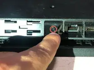 Переверните PS4 дном вверх так, чтобы снятый винт находился напротив вас.