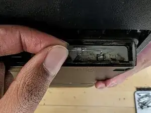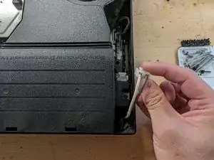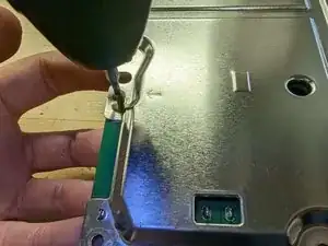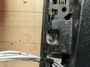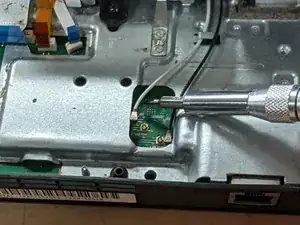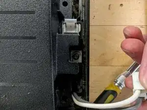 Выкрутите два крестовых винта Phillips #0, скрытые под проводами рядом с блоком питания.