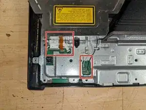 Отключите три ленточных кабеля и два коаксиальных кабеля прямо под Blu-ray приводом.