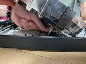 НИ В КОЕМ СЛУЧАЕ не поднимайте привод Blu-ray слишком высоко, иначе вы оборвёте лентовый кабель под ним.