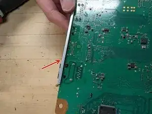 Положите консоль на поверхность. Используйте лопаточку, чтобы аккуратно поддеть левую сторону корпуса, одновременно поднимая правую сторону руками.