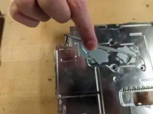 Указанный металлический элемент может ослабнуть после снятия узла с корпуса. Запомните его расположение и ориентацию для последующей сборки.
