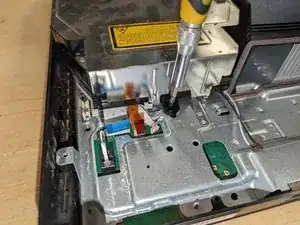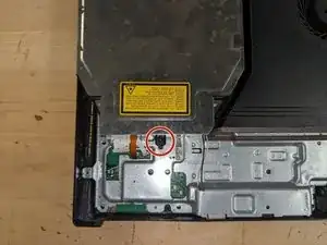Выкрутите чёрный крестовый винт Phillips #0, крепящий Blu-ray привод.