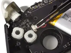 Используйте пинцет с притуплёнными губками, чтобы отключить разъём аккумулятора, вытянув его прямо из гнезда.