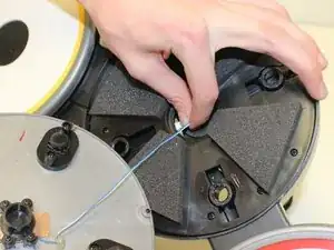 Удалите маленькую проволочную зажимку, показанную на картинке.