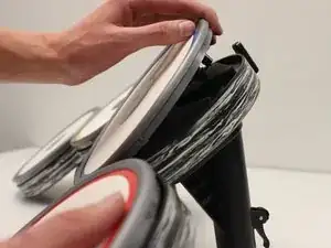 В поддержке находится маленький пластиковый диск и пружина; не потеряйте их.