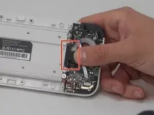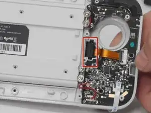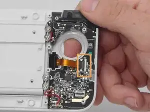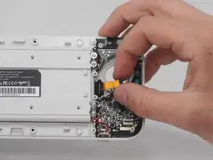 Поднимите чёрную фиксирующую защёлку ZIF, удерживающую ленточный кабель, в верхнее положение.