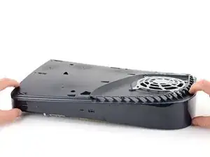 Поднимите угол передней панели с логотипом PlayStation, чтобы отщелкнуть её от корпуса.