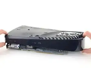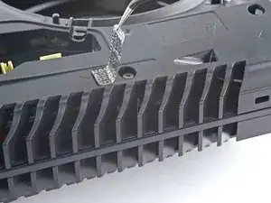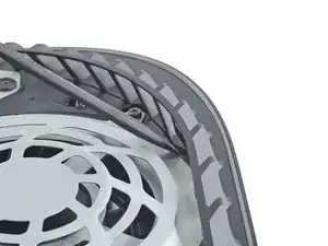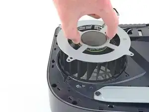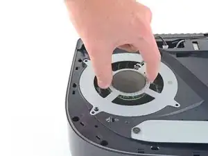 Используйте отвёртку T9 Torx Security, чтобы выкрутить четыре винта, которые крепят кожух вентилятора к корпусу: