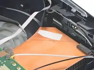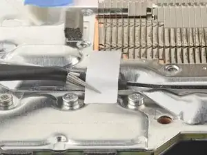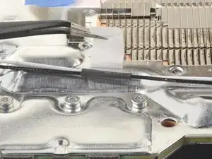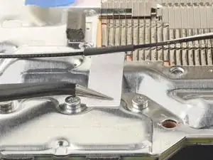 С помощью пинцета отогните белую наклейку, удерживающую LED-шлейф на радиаторе.