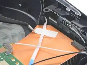 С помощью пинцета отогните белую наклейку, удерживающую антенные провода на верхней защитной пластине.